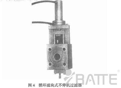 新型熔體換網(wǎng)過(guò)濾器在國(guó)內(nèi)的開發(fā)應(yīng)用較晚,上世紀(jì)八十年代年國(guó)內(nèi)一些企業(yè)才研制出帶料壓傳感報(bào)警系統(tǒng)和高壓污料泄荷系統(tǒng)的循環(huán)濾塊式不停機(jī)換網(wǎng)過(guò)濾器(圖4),該機(jī)可在佳時(shí)機(jī)報(bào)警更換濾網(wǎng),使換網(wǎng)時(shí)機(jī)選擇可準(zhǔn)確量化,防止錯(cuò)換和漏換而且還能使主體總壓力比同類產(chǎn)品降低30%-50%,在美、德、日、奧、韓等國(guó)進(jìn)口的BOPP,CPE,EPE,塑料拉絲,彩印復(fù)膜生產(chǎn)線上配套使用證明安裝簡(jiǎn)便,易操作,性能穩(wěn)定可靠。